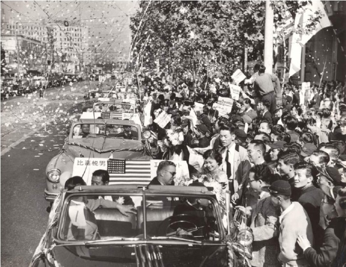 The Lopat squad did have a schedule to keep and flew on a Pan American Stratocruiser to Tokyo’s Haneda Airport, arriving at 1:05 P.M. on October 22. They could scarcely have anticipated the frenzied reception they received. Although the New York Giants had been in the country for a week and had played five games, thousands of Japanese greeted the plane. After being officially greeted by executives from the trip sponsor, Mainichi, and receiving gifts from beautiful young Japanese women, the ballplayers climbed into convertibles, one player per car, to travel to the Nikkatsu Hotel, which would be their headquarters. The trip, which would normally take about 30 minutes, took almost three hours because of the throngs of fans lining the route and pressing against the cars as Japanese mounted and foot police were overwhelmed. Eddie Mathews likened it to the pope in a motorcade without police or security while it reminded Robin Roberts of a ticker-tape parade in New York City.