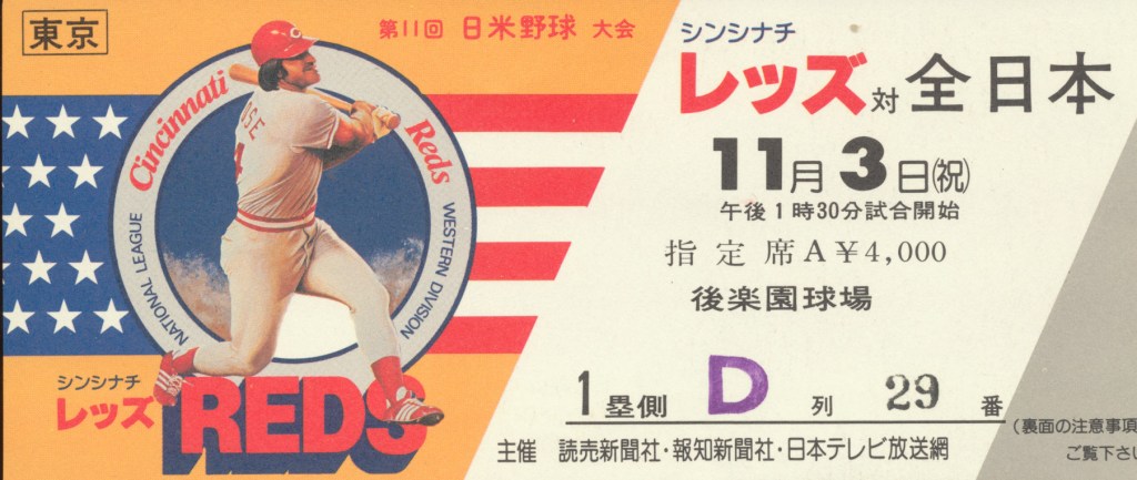 The Big Red Machine started working out in smoggy Korakuen Stadium in Tokyo less than 24 hours after landing in Japan. “Ohayo Gozai Masu (Good Morning),” Johnny Bench greeted Japanese photographers. Anderson warned the players who were still suffering from jet lag, “Nobody will get crazy.” Infielder Dan Driessen remarked about the jet lag, “It’s manageable right now. It’s totally a new experience (to play in Japan).” Reds coach Alex Grammas promised, “[The Japanese fans] are expecting us to win, and we are going to win.” Meanwhile, Pete Rose boasted that he had turned down an offer to play for the Seibu Lions for “more than a million dollars.” He added, “Yes, I’ll play in Japan … 17 games (for the tour).”