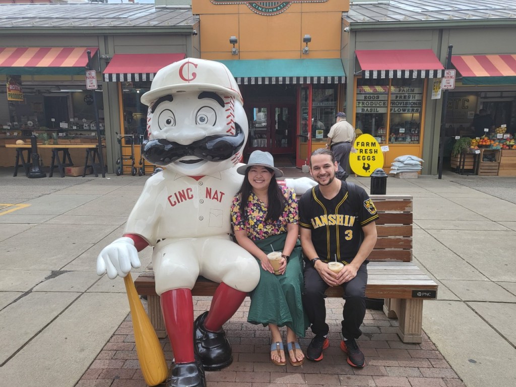 ProEyeKyuu creator Michael and wife hanging out with Reds mascot